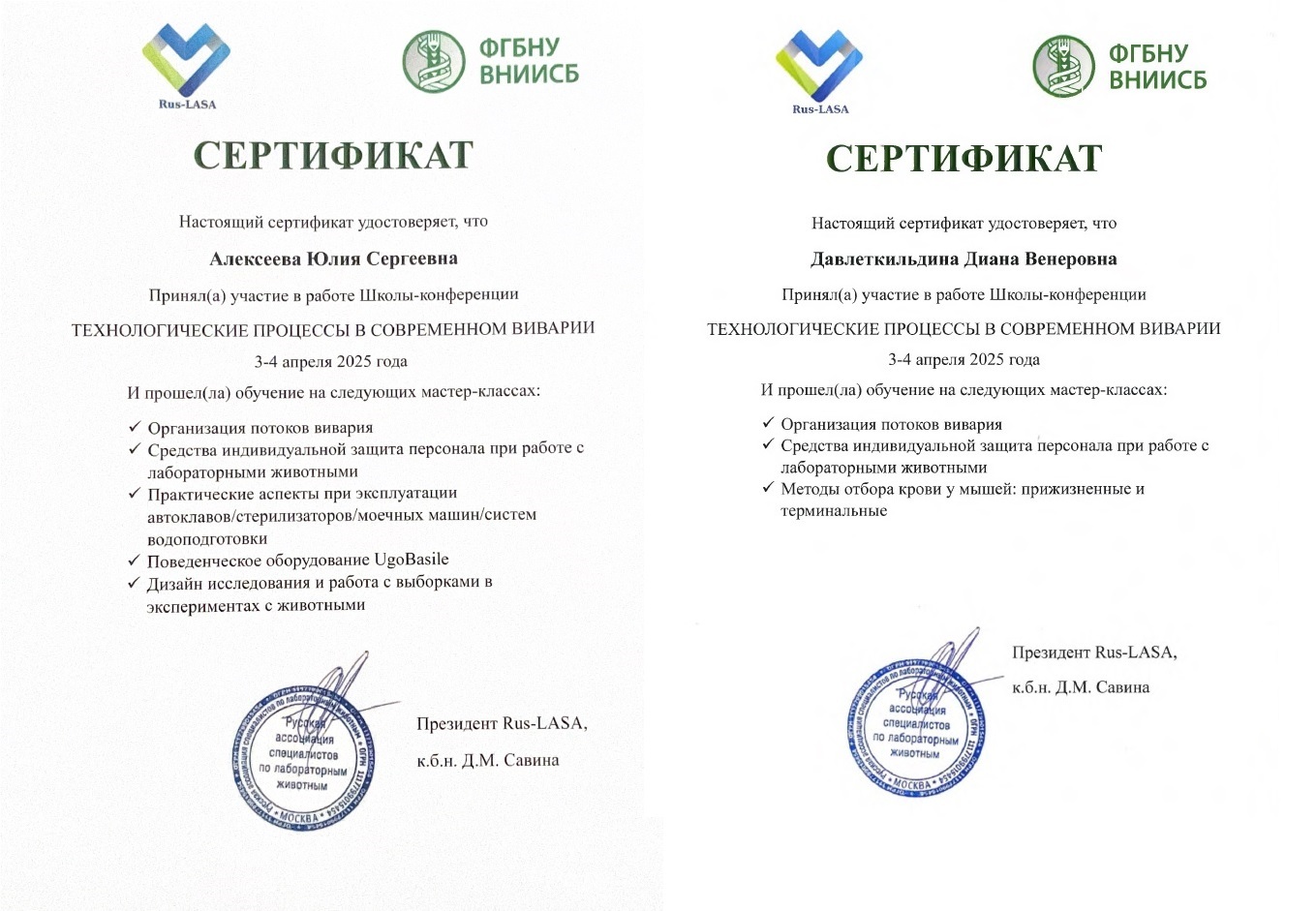 В рамках научно-практической Школы-конференции Rus-LASA «Технологические процессы в современном виварии» на территории ФГБНУ ВНИИСБ (г. Москва) 3-4 апреля 2025г. состоялась встреча специалистов по работе с лабораторными животными.